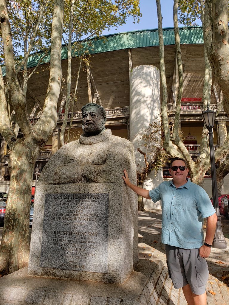 The next day we got to visit the same bullring Hem describes in the book (they give tours but it was closed for private ones on the day we were there), and took a picture with his sculpture close to the entrance. As we were walking around the area, I marvelled at at how a 27-year-old kid (his age when Sun was published) could have had so much of an impact on one town. Obviously Pamplona was important and historical centuries before Hemingway was born, but his book had an immense impact on it. On his last visit to the city in 1959, he wrote in The Dangerous Summer: