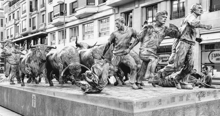 There’s a helluva lot more that go to the fiesta now, but I’m glad to be here a couple months after the bullfights that take place in July. The streets are wonderfully narrow, the buildings are charmingly medieval, and there are great cafes wherever you turn. With the right kind of eyes (and after several cervezas), I can see Jake, Bill, Brett, and Cohn head into the bullring across the street from the wine cask sidewalk table were I sit.