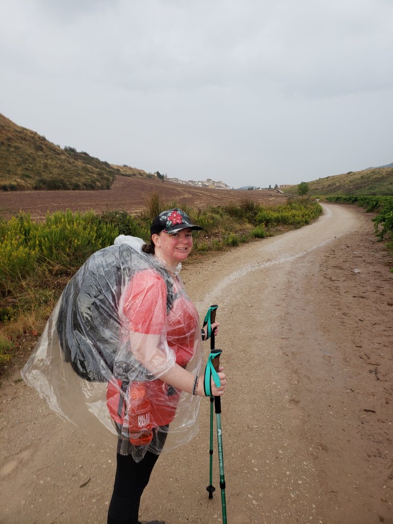 The decision was to keep on moving, but we smartly put the ponchos over ourselves as well as our packs. And that’s when it began to pour. It was wet and cold, and a tough hike to the beautiful hilltop town of Cirauqui.