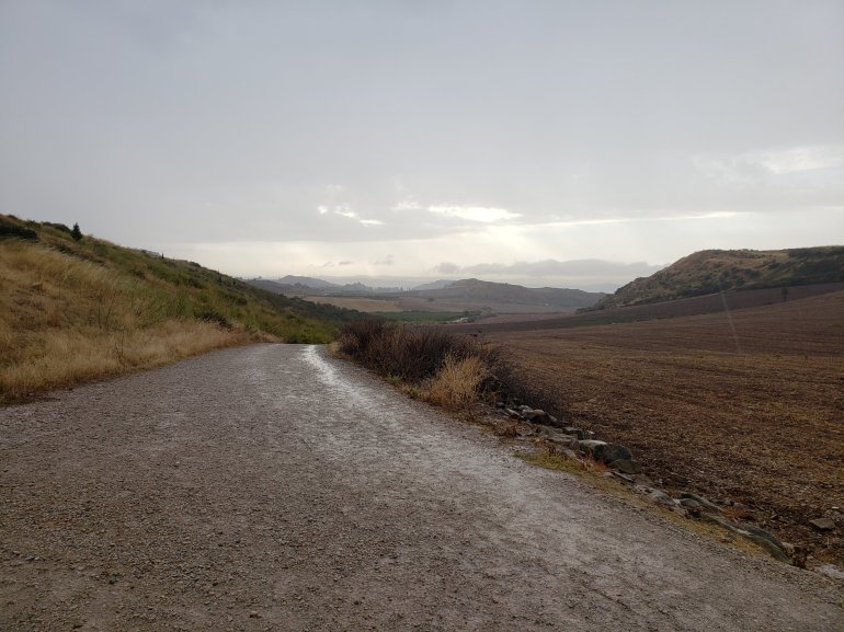 Leaving town we got to step over original stones from the 2,000 year-old Roman Road that goes through the area. Its really cool in principle, and two millennia ago it was an apex of technology for Caesar and his soldiers. But for pilgrims in 2019 in the rain and mud, the busted up stones were a struggle to traverse.