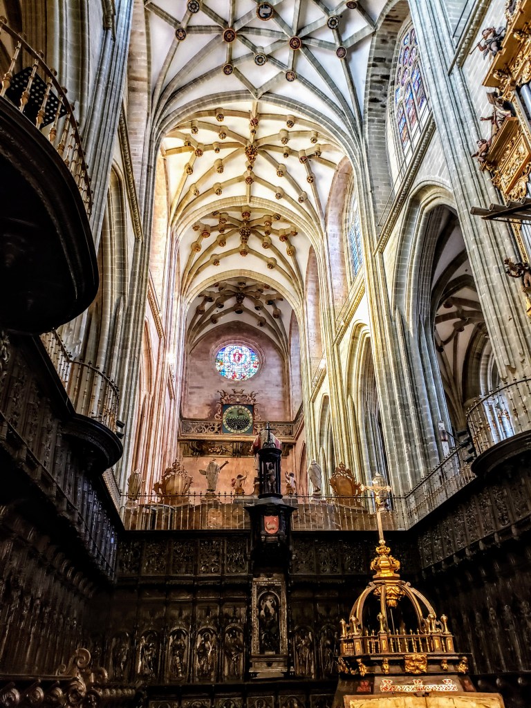After leaving our mochillas (backpacks) at the front desk at check-out, we head back to the Cathedral of Santa Maria just around the corner. An excellent audio guide comes with the price of admission, and I’m glad it starts you outside to appreciate the façade of the building. The structure has two towers of slightly different colors (one reddish brown and the other tan), with the elaborately carved center featuring some great gargoyles attached by short flying buttresses on either side. I could have stared at it for hours.