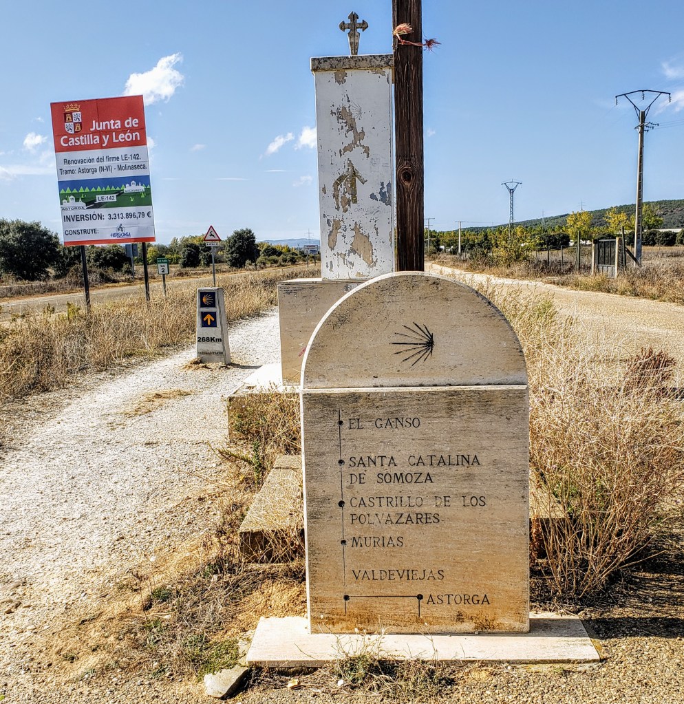 I meet J’Nell back in the plaza at 2 pm, we collect our backpacks at the hotel, and we’re on our way to Castrillo de los Polvazares. The reason we are making this short detour is that the town comes highly recommended by Ron, a buddy of J’Nell’s Dad, who has done the Camino 5 times. He is great friends with Basia and Betrand, the couple who run Flores del Camino, a retreat center there. In fact Ron has just spent some time with them, and we unfortunately miss him by one day.