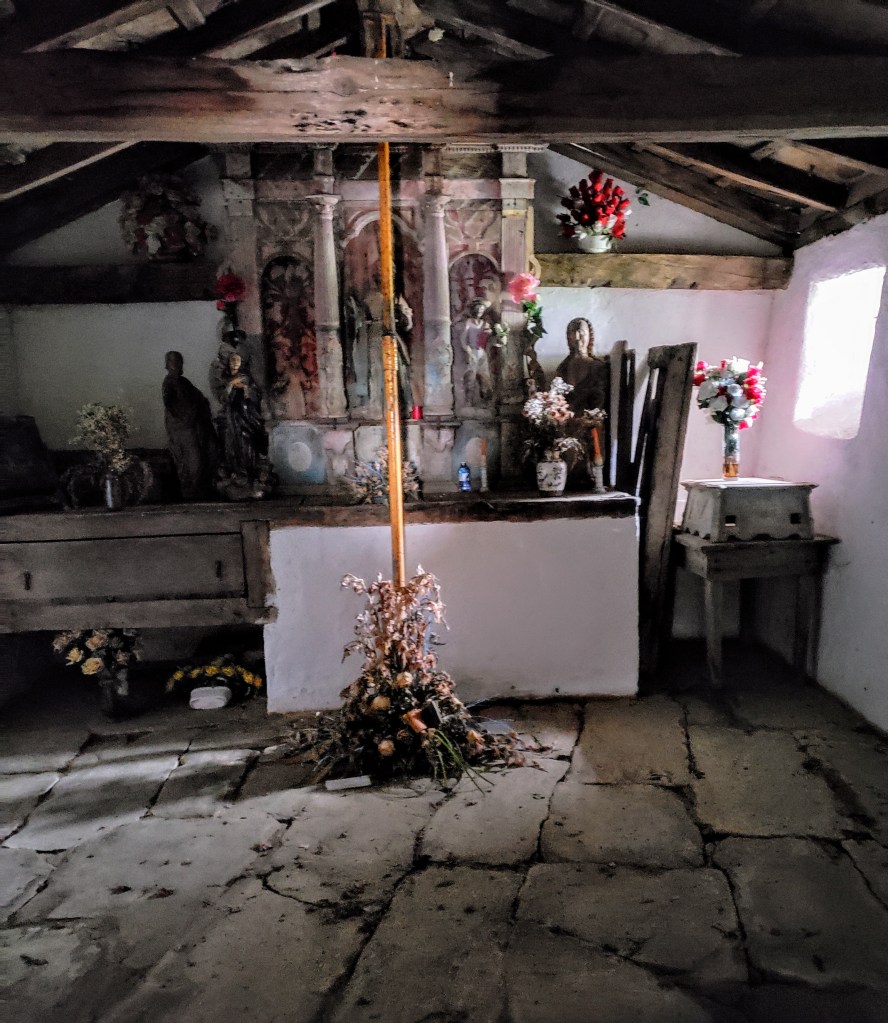 At a town called Biduedo we see “the tiniest chapel, and continue downward. We’re finally able to take off our ponchos when the sky clears, and at Fillobil we catch up to the nice Australian lady (cannot remember her name) we first me when leaving Ponferrada. We talk while heading into the beautiful valley, but then she realizes she left her phone and glasses at the cafe in the last town.