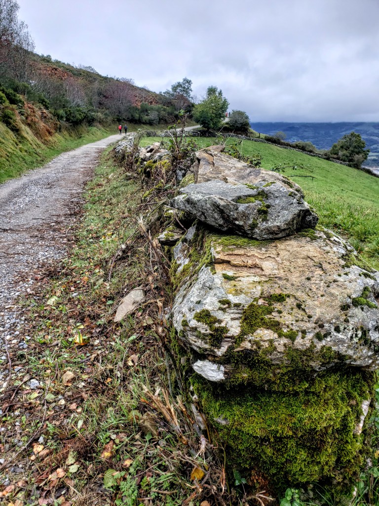 Rain is in the forecast, but as we set out it is dry. Looks like most people left earlier, and we once again have the trail almost to ourselves for most of the day. The path out of town is nice crushed rock and sand, just like yesterday once we reached Galicia. However, there is a ton of up and down, and it is like a rollercoaster along the hillside.