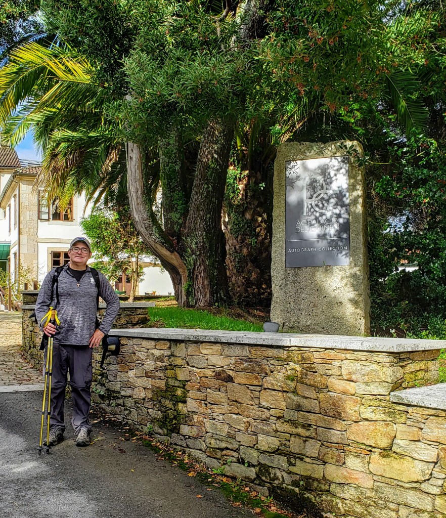 He had charged onward after we saw him at the bar a few days ago, and got into town yesterday. The three of us chat, take some photos, and all touch the scallop shell in the square. We make plans to meet up with Jeremy later on, but now it’s a ten or so minute walk to the posh Palacio Del Carmen to ditch our backpacks and shower. We’ll be here three nights and the hotel is well worth the splurge.