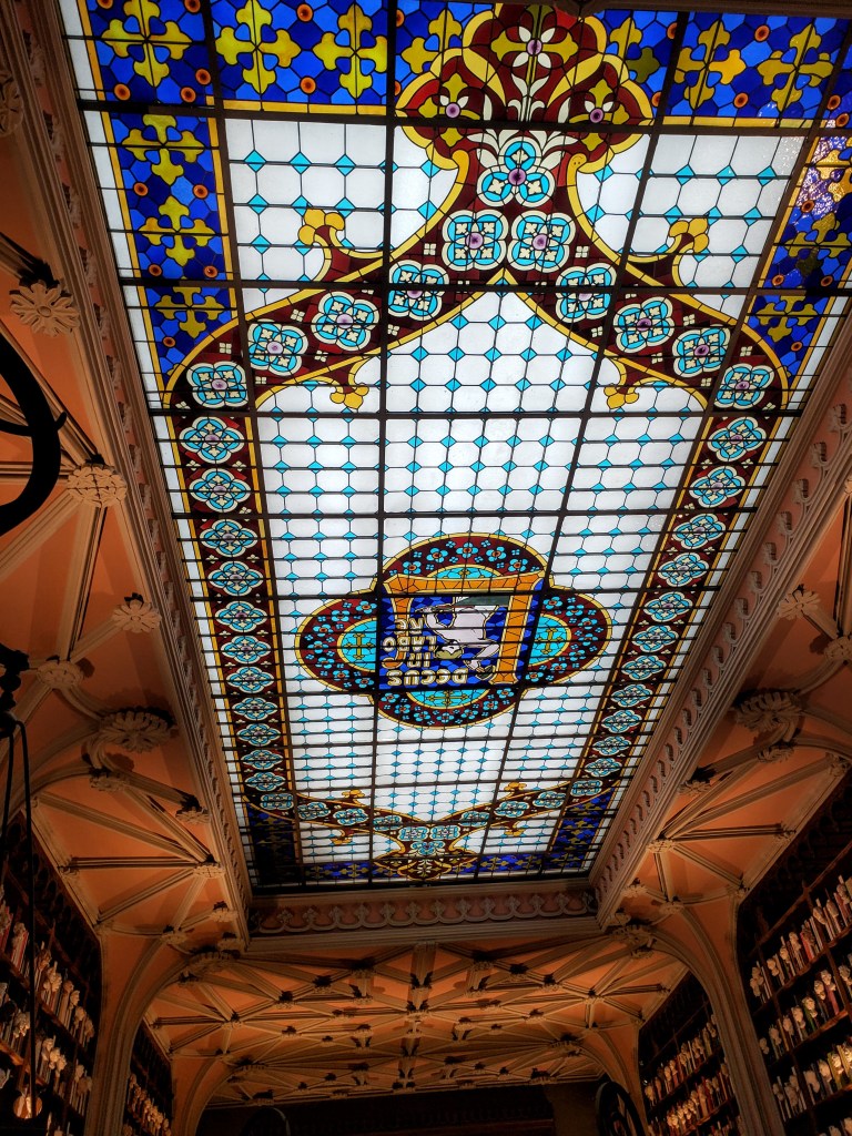 Opened in 1906, it’s lacy and fanciful exterior is an advertisement to come inside. But as compelling it is to look at from the street, the interior is even better. All the books, the polished wood, and that winding staircase leading up to more books and a stunning stained-glass ceiling. Wow!