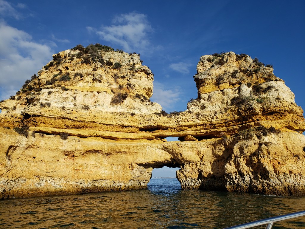 The cliffs, from the sea: We booked a 2 hour excursion on a powerboat meant to hold 8 people. It ended up being only J’Nell and I, and we got a private tour of the cliffs and caves along the Lagos coast. Gorgeous, stunning, and the photos (while beautiful) do not tell the whole story. At one point our very friendly guide/captain asked if he could cut the engine and let us drift for a few minutes. We of course said yes, and he said this before going completely silent: “This place is so beautiful, yet always so many boats. You feel lucky to be here, but can’t always enjoy it. I can’t remember being out here so alone, so quiet. I just want to float and take it all in.” We did and it was magical.